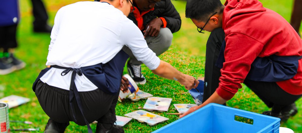 From setting up vibrant workspaces to assisting with group murals and colour blending, the high school team played a vital role in making the day run smoothly. Their presence created an atmosphere of encouragement and fun, where creativity could unfold freely and confidently.