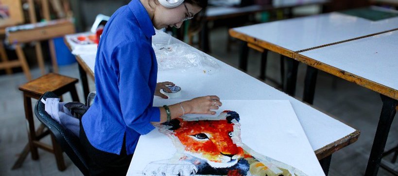 This week in the High School Creative Department, Year 10 student Natalie has been developing her abstract coursework piece inspired by her recent visit to the animal orphanage. Working from her own firsthand photograph, she is exploring expressive colour and bold texture to bring the character of the lion to life on canvas.