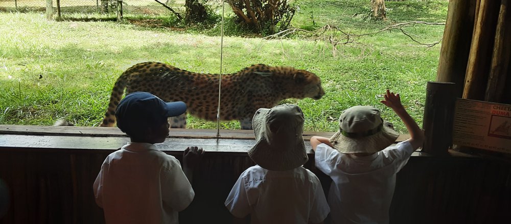 They were especially fascinated to see cold-blooded reptiles basking in the sun—just as they had learned in class—and the mamba (crocodile) was doing exactly that. The carnivorous simba (lion) was enjoying its lunch, while the playful duma (cheetah) put on a thrilling show for them.